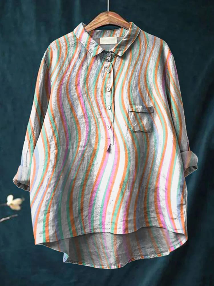 Women's Line Art Print Casual Cotton And Linen Shirt